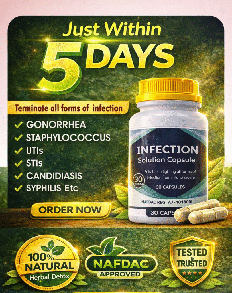 Infection Solution Capsule is a deep-cleansing herbal formula designed to eliminate infections from the root, not just control symptoms. It works internally—where drugs and ordinary herbs cannot reach.
